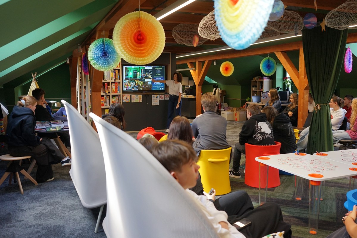 Uczniowie mieli okazję poznać działalność naszej instytucji – zarówno tę tradycyjną, związaną z bogatym księgozbiorem, jak i nowoczesną, opartą na nowych technologiach oraz projektach angażujących lokalną społeczność – od spotkań autorskich, przez warsztaty, aż po akcje ogólnopolskie.