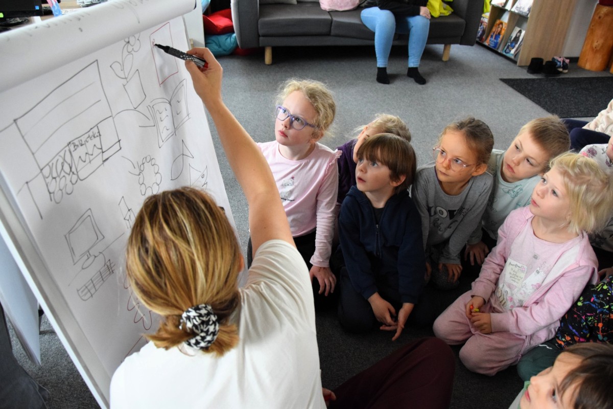 W dniu 13.11.2025r. Wypożyczalnię Młodzieżową MBP w Zakopanem odwiedziły dzieci z Przedszkola nr 3 w Zakopanem. Przedszkolaki wzięły udział w lekcji bibliotecznej, podczas której poznały „Przepis na książkę” – od pomysłu, przez tworzenie bohaterów, aż po ilustracje. Zajęciom towarzyszył kreatywny warsztat, który w przystępny i ciekawy sposób przybliżył najmłodszym proces tworzenia własnej historii.