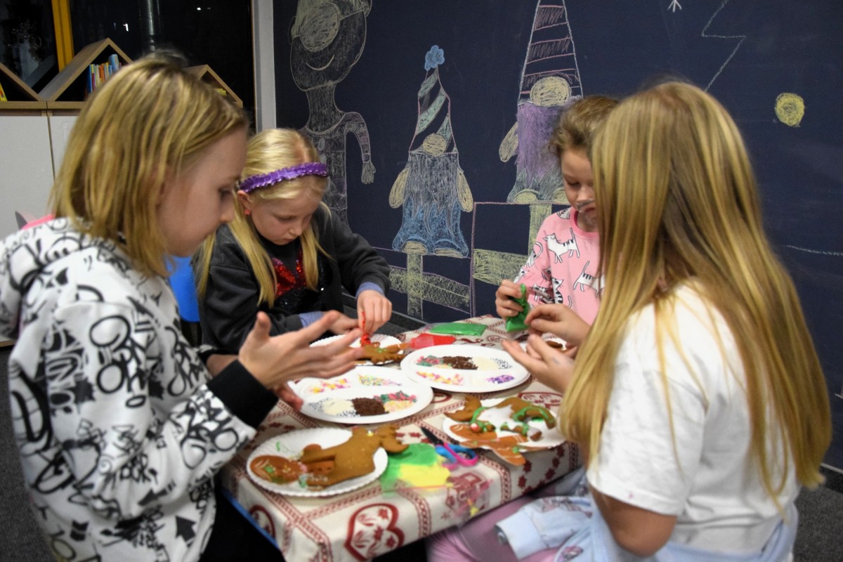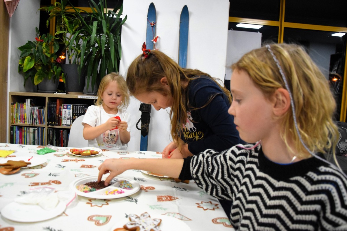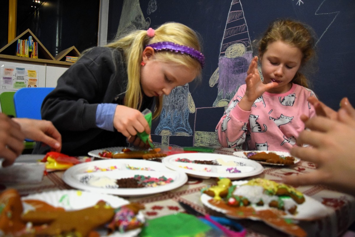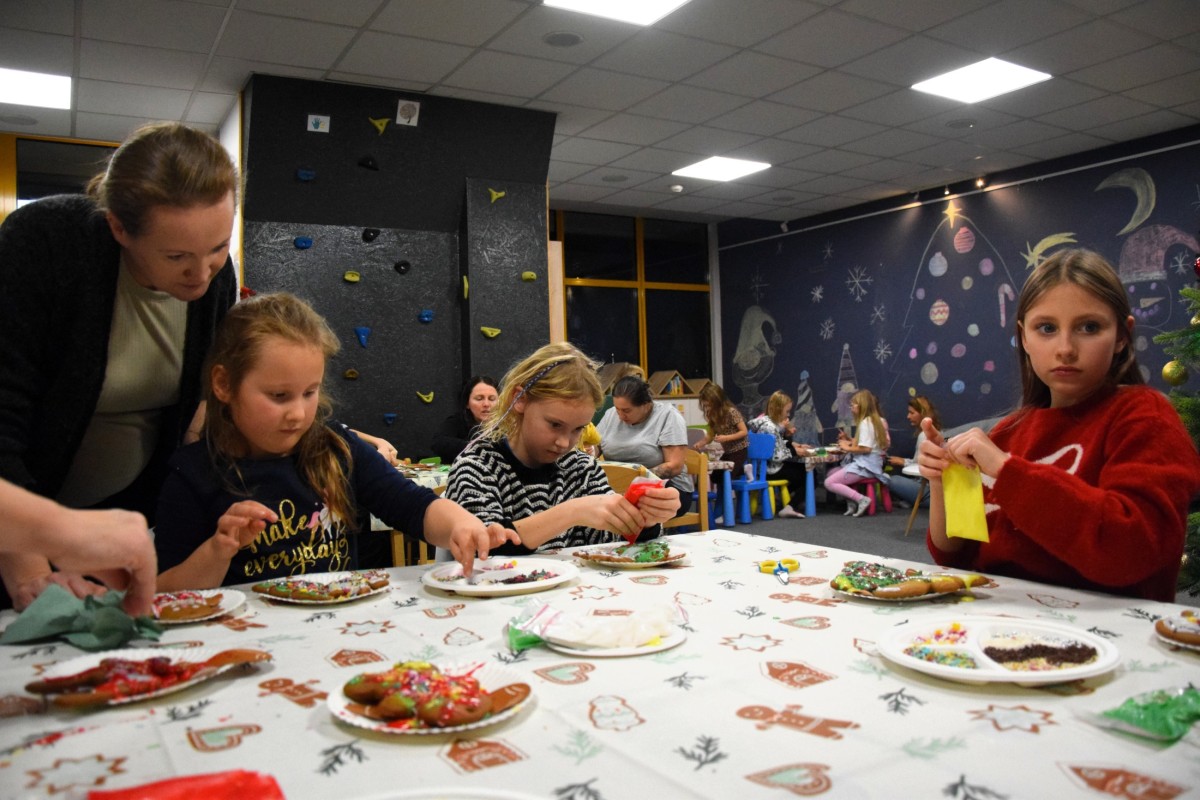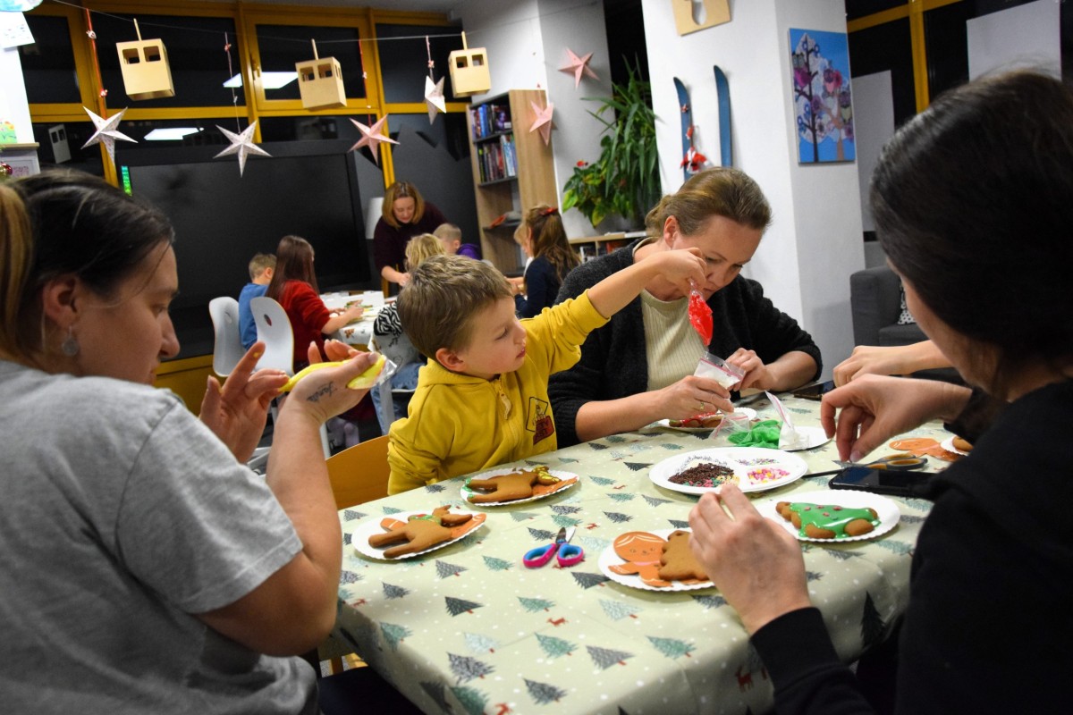Dzieci i rodzice z ogromnym zaangażowaniem dekorowali pachnące pierniczki oraz wspólnie ubierali choinkę, która dzięki nim nabrała wyjątkowego, świątecznego blasku. Nie zabrakło też chwili z literaturą — czytaliśmy fragment książki Daniela Nappa „Pan Brumm obchodzi Boże Narodzenie”. Ta ciepła i pełna humoru historia wywołała mnóstwo uśmiechów i pięknie dopełniła świąteczny nastrój.