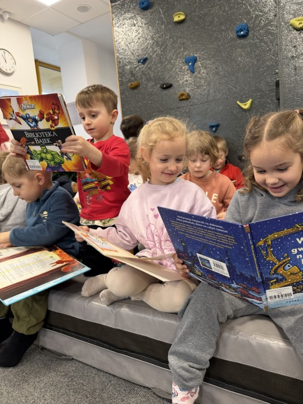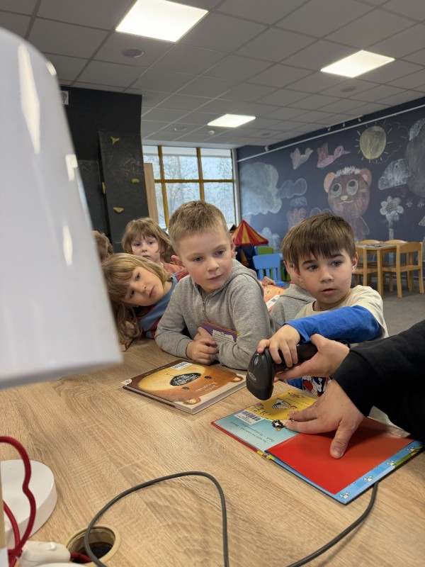 Podczas wizyty mali goście mieli okazję zapoznać się z księgozbiorem przeznaczonym dla młodych czytelników oraz dowiedzieć się, jak funkcjonuje biblioteka. Największą atrakcją okazała się możliwość wcielenia się w rolę bibliotekarzy – dzieci z zaangażowaniem próbowały swoich sił w tej roli, poznając codzienne obowiązki związane z wypożyczaniem książek.