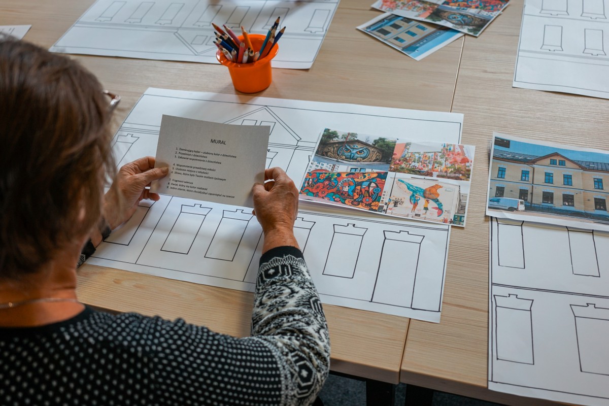 Na treningu pamięci przenieśliśmy się w świat sztuki ulicznej, odkrywając historię i znaczenie murali. Seniorzy tworzyli własne „murale pamięci”, odtwarzając wspomnienia z dzieciństwa i młodości – pełne emocji, kolorów i osobistych historii.