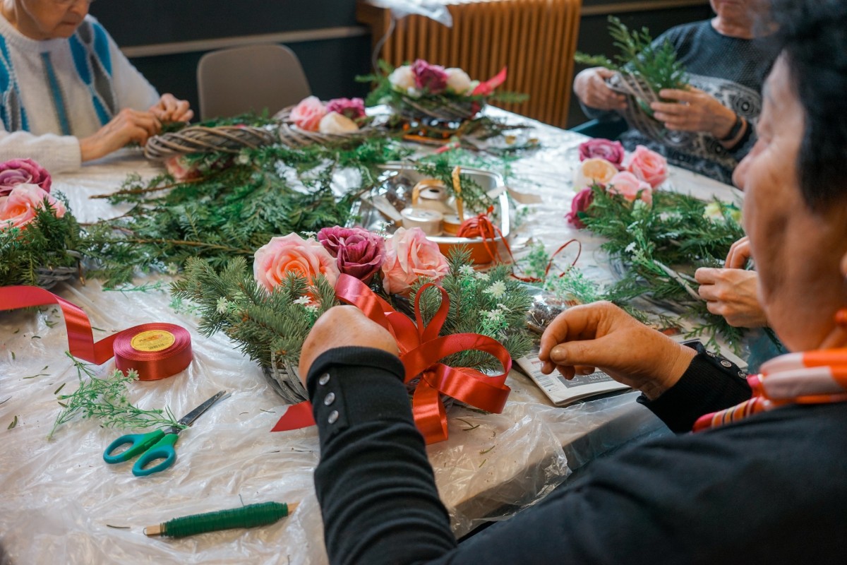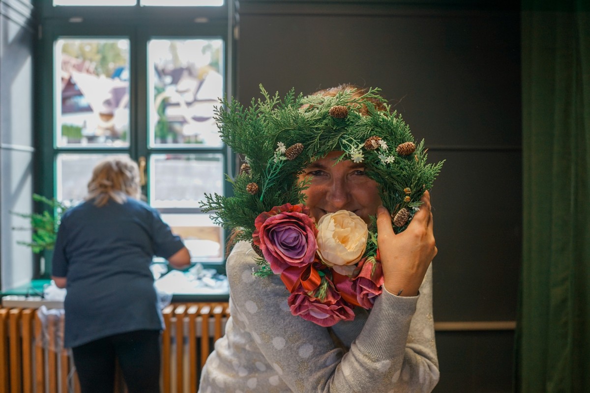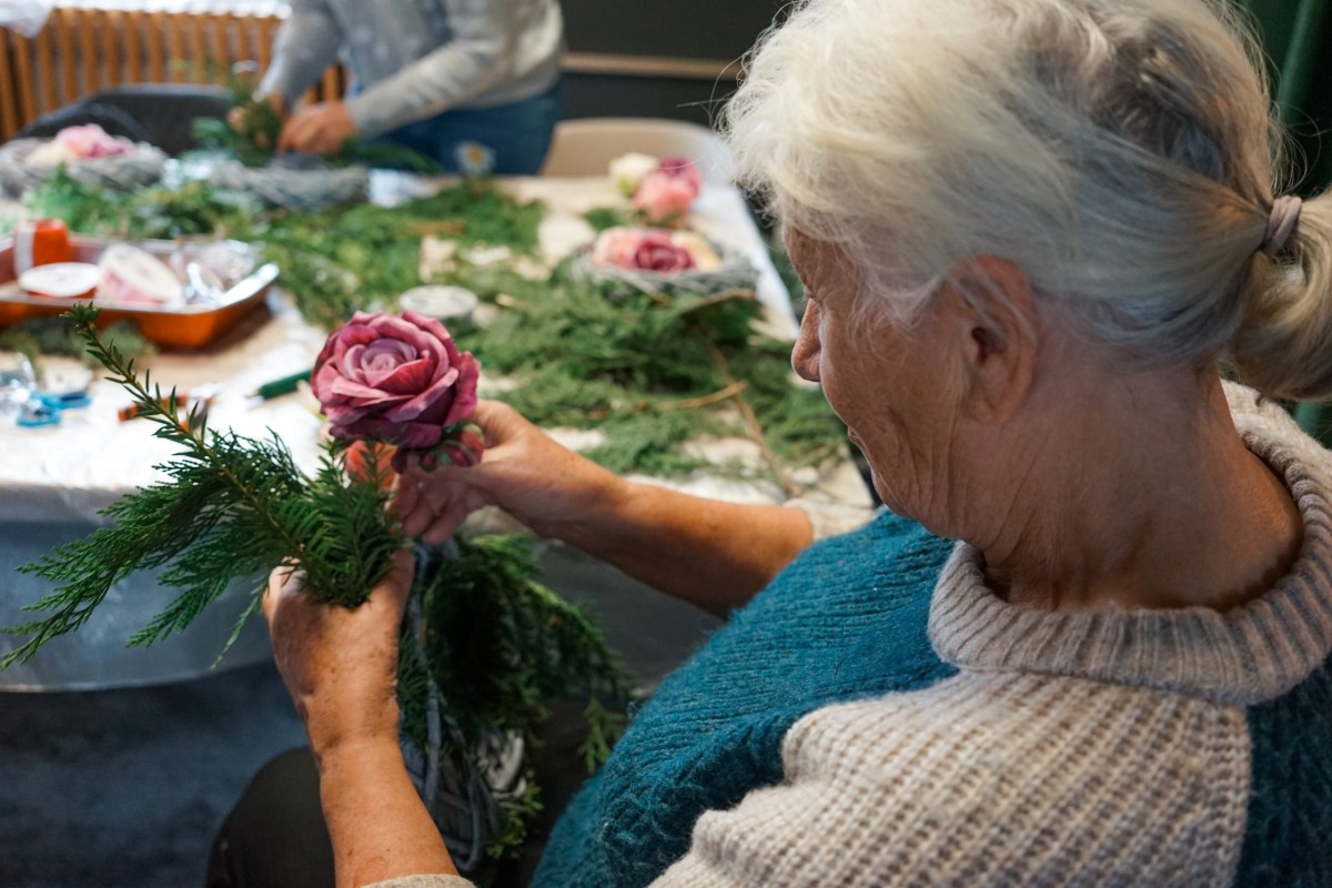 Na warsztatach artystycznych seniorzy przygotowali jesienne wiązanki i kompozycje kwiatowe na groby bliskich.
