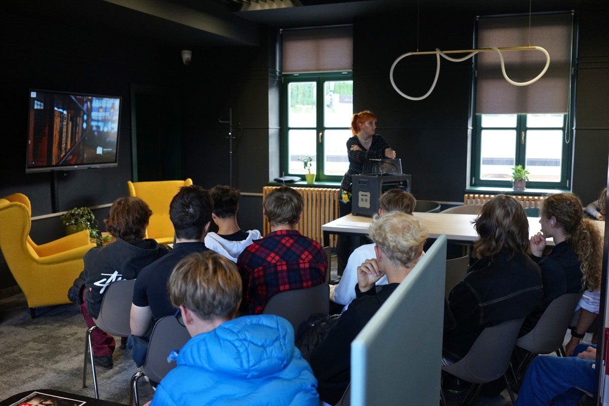 Uczniowie mieli okazję poznać działalność naszej instytucji – zarówno tę tradycyjną, związaną z bogatym księgozbiorem, jak i nowoczesną, opartą na nowych technologiach oraz projektach angażujących lokalną społeczność – od spotkań autorskich, przez warsztaty, aż po akcje ogólnopolskie.