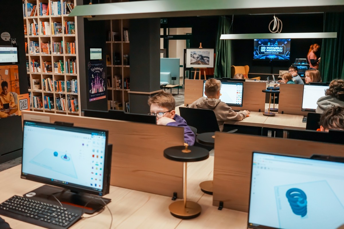 Wczoraj, w filii Mediateka, odbyły się warsztaty pt. „Od pomysłu do wydruku” dla dzieci w wieku 11-13 lat. Spotkanie rozpoczęliśmy od krótkiego wprowadzenia teoretycznego, odpowiadając na pytania: jak zbudowana jest drukarka 3D?, czym jest filament? i jak go przetopić?