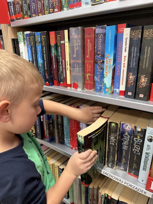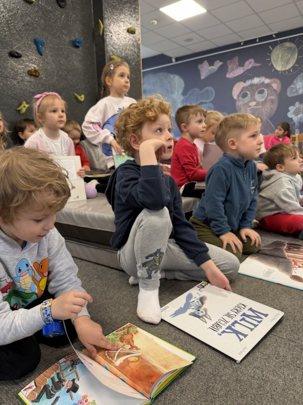 Podczas wizyty mali goście mieli okazję zapoznać się z księgozbiorem przeznaczonym dla młodych czytelników oraz dowiedzieć się, jak funkcjonuje biblioteka. Największą atrakcją okazała się możliwość wcielenia się w rolę bibliotekarzy – dzieci z zaangażowaniem próbowały swoich sił w tej roli, poznając codzienne obowiązki związane z wypożyczaniem książek.