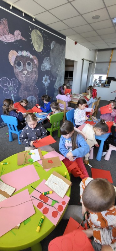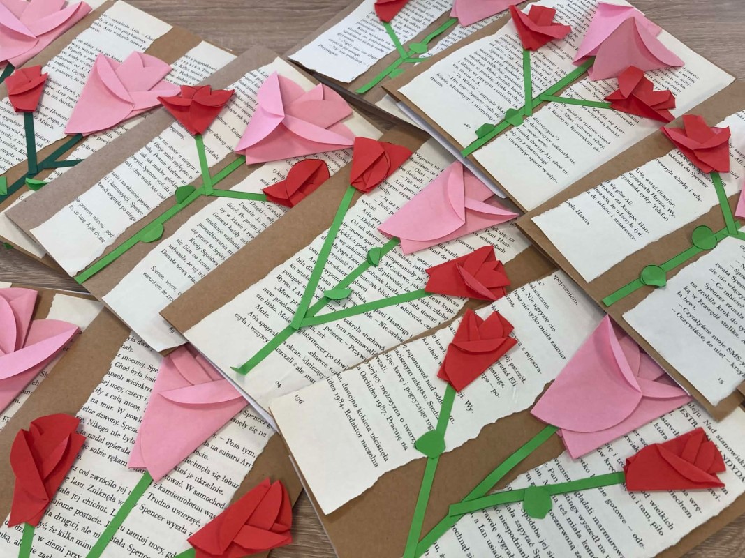 Motywem przewodnim warsztatów była róża – jeden z najistotniejszych elementów utworu. Dzieci stworzyły własne, unikatowe karty pocztowe, wykorzystując kolorowe papiery oraz fragmenty starych książek, co nadało pracom wyjątkowy, artystyczny charakter.