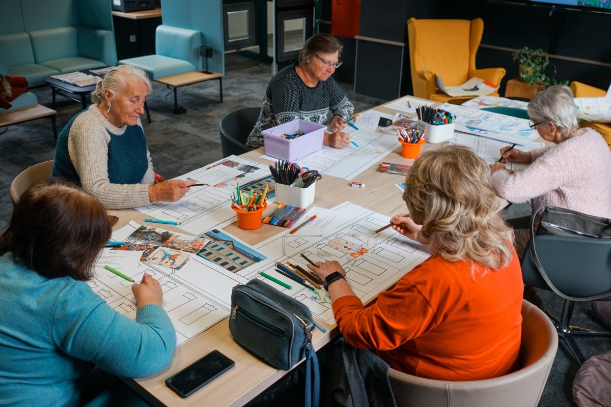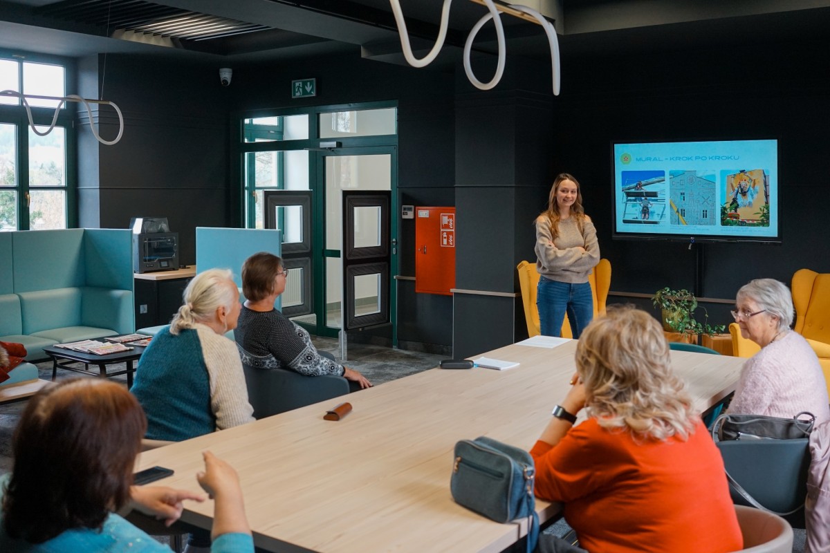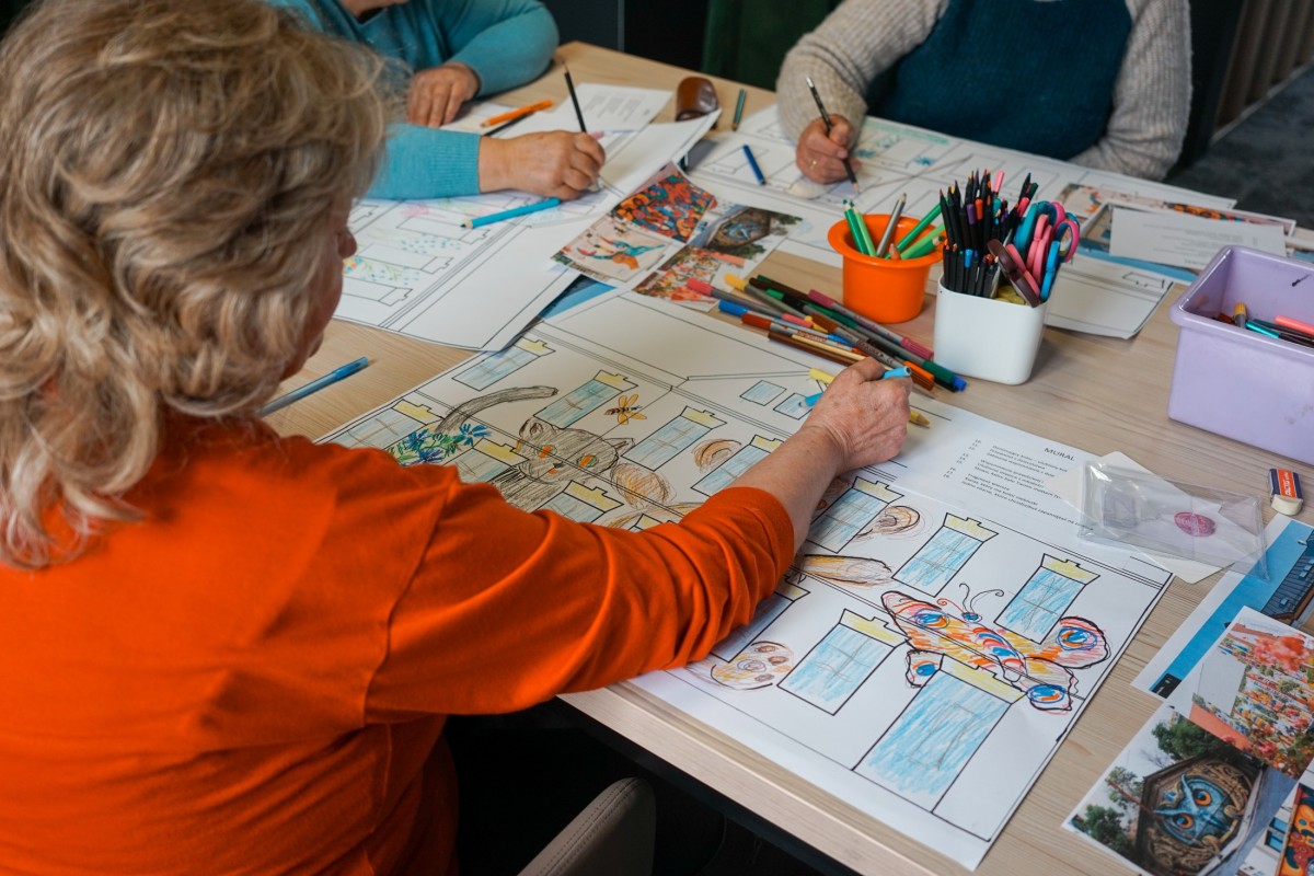 Na treningu pamięci przenieśliśmy się w świat sztuki ulicznej, odkrywając historię i znaczenie murali. Seniorzy tworzyli własne „murale pamięci”, odtwarzając wspomnienia z dzieciństwa i młodości – pełne emocji, kolorów i osobistych historii.