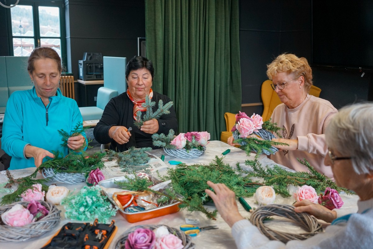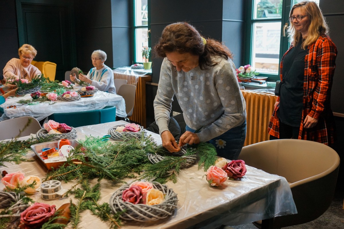 Na warsztatach artystycznych seniorzy przygotowali jesienne wiązanki i kompozycje kwiatowe na groby bliskich.